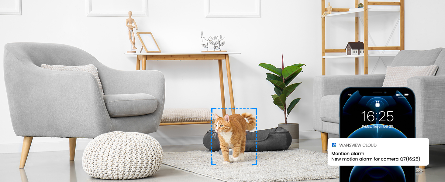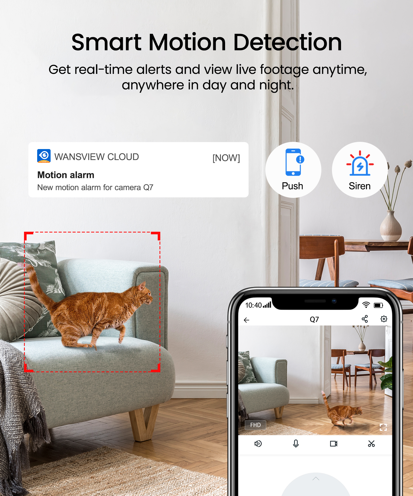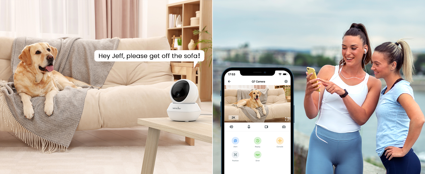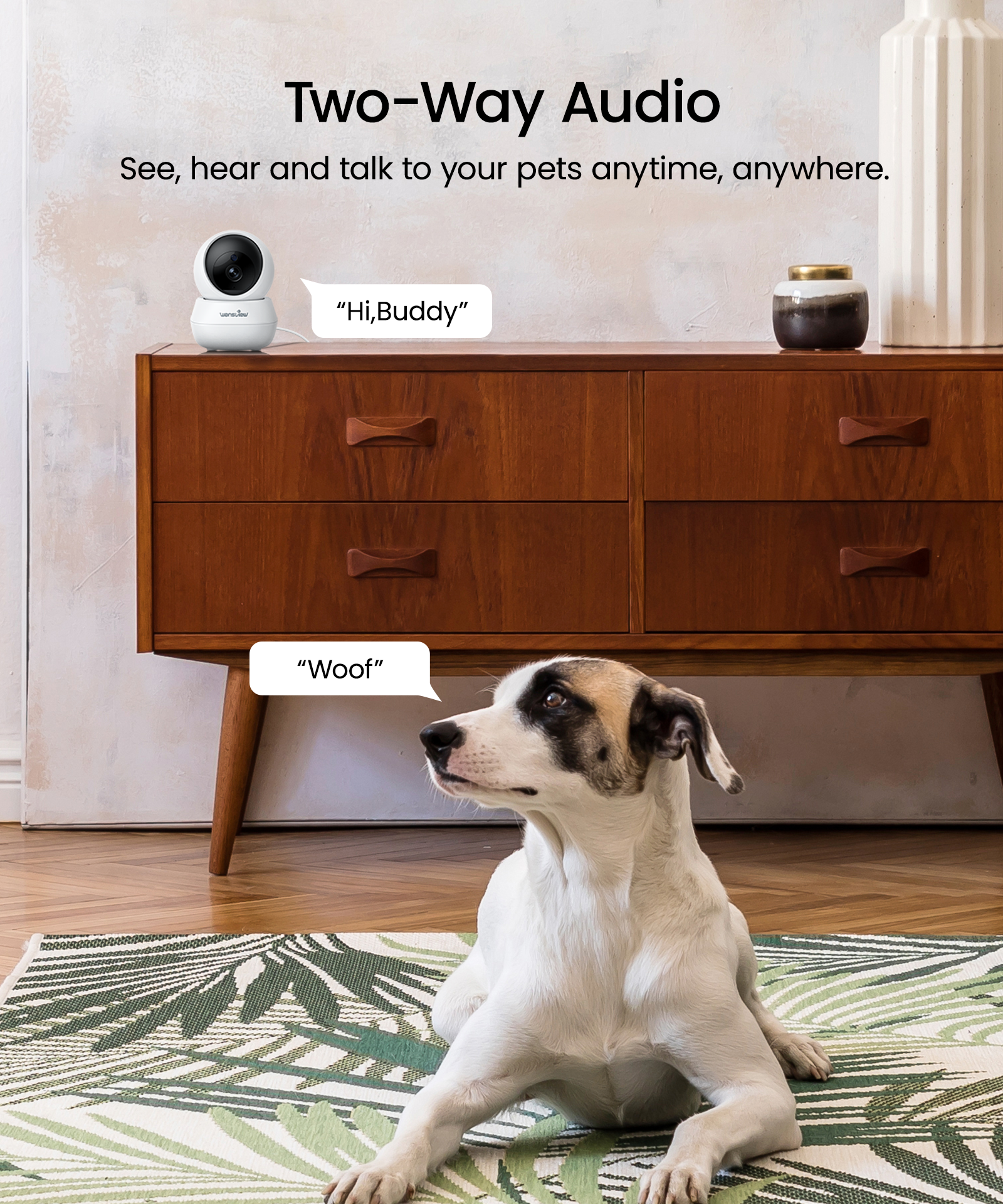 Two-Way Audio Talk to your dog via the Wansview Cloud app on the phone.