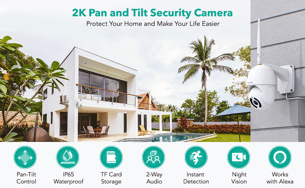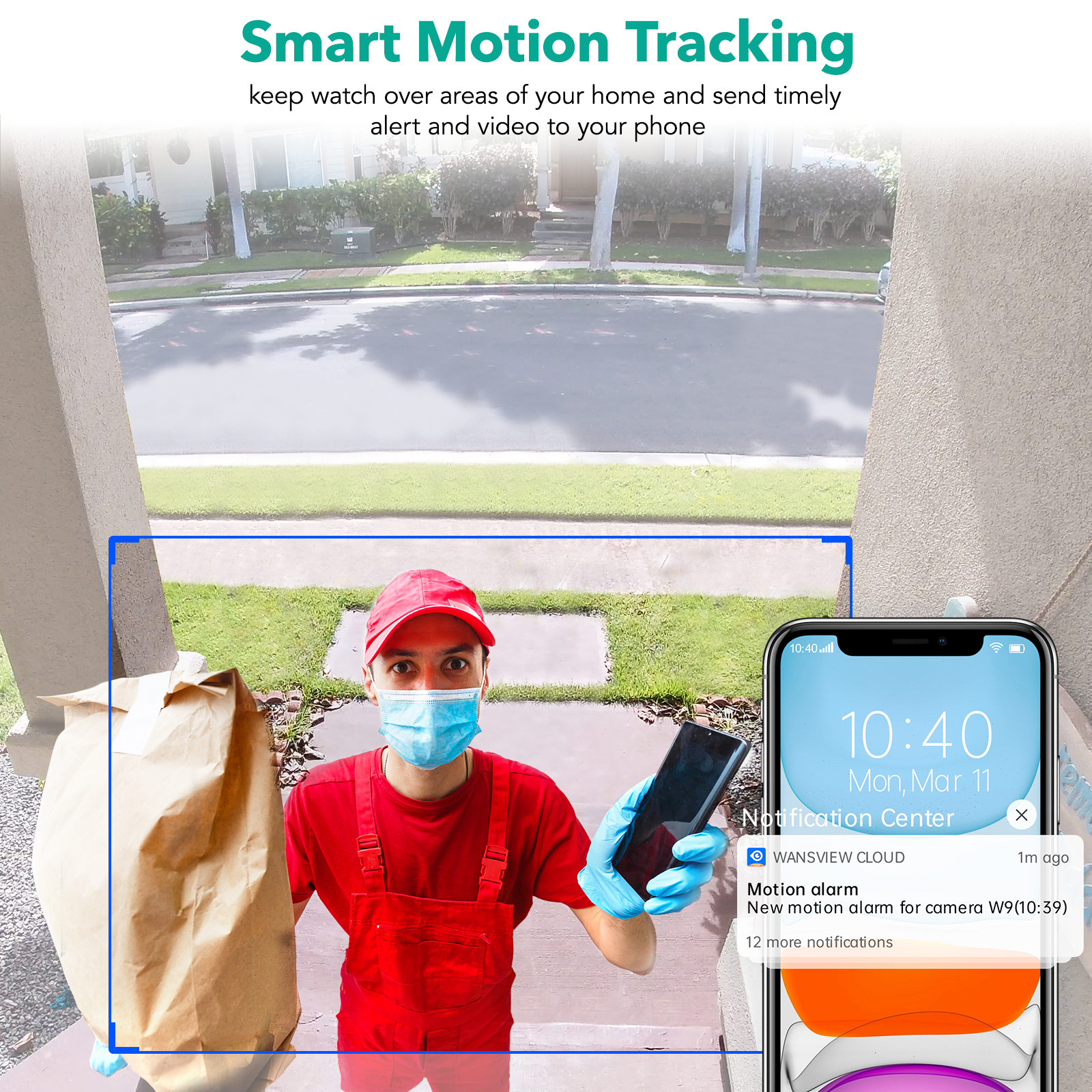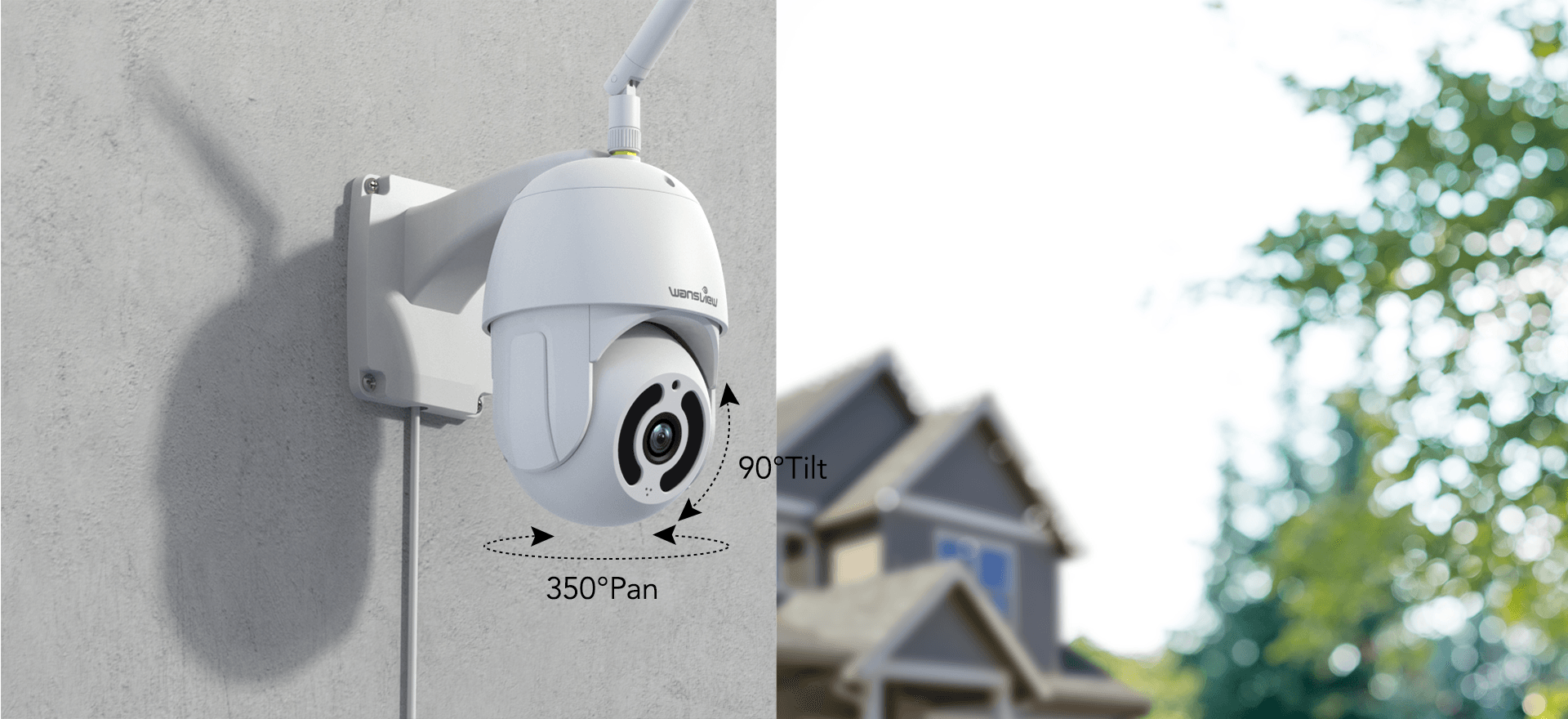 Wansview outdoor camera uses pan, tilt, and zoom to provide both wide-area 350° coverage and great detail with a single camera. Use Cloud APP to remotely control the camera up/down&left/ right with less blind area. With 3 Megapixel HD lens, this camera provides a great image quality, which makes it possible to view and capture the full area you are interested in.