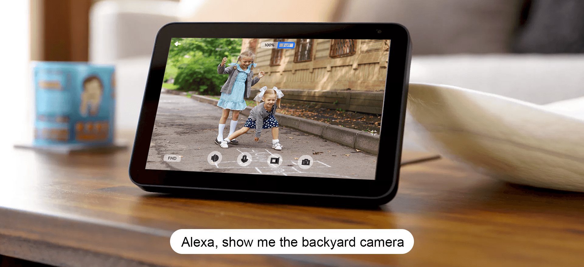 To use Alexa with this security camera, first, complete the camera setup by using Wansview Cloud app and then connect your camera to Alexa APP. Use voice control to display the live-feed of Wansview security cameras. Alexa will automatically give you friendly responses and execute your commands like "Alexa, show me the front door camera" "Sure, here you go."